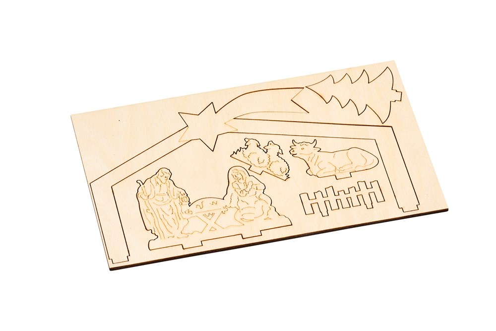 Stimmungsvoll gestaltete Krippe aus naturbelassenem Birkensperrholz, hergestellt in der EU. Bestehend aus 7 Einzelteilen zum zusammenstecken, inklusive Steckanleitung. Ideal auch als Mailingverstärker. Maße ca. 18 x 6,5 x 9,5cm. VE 170/1 Stück.