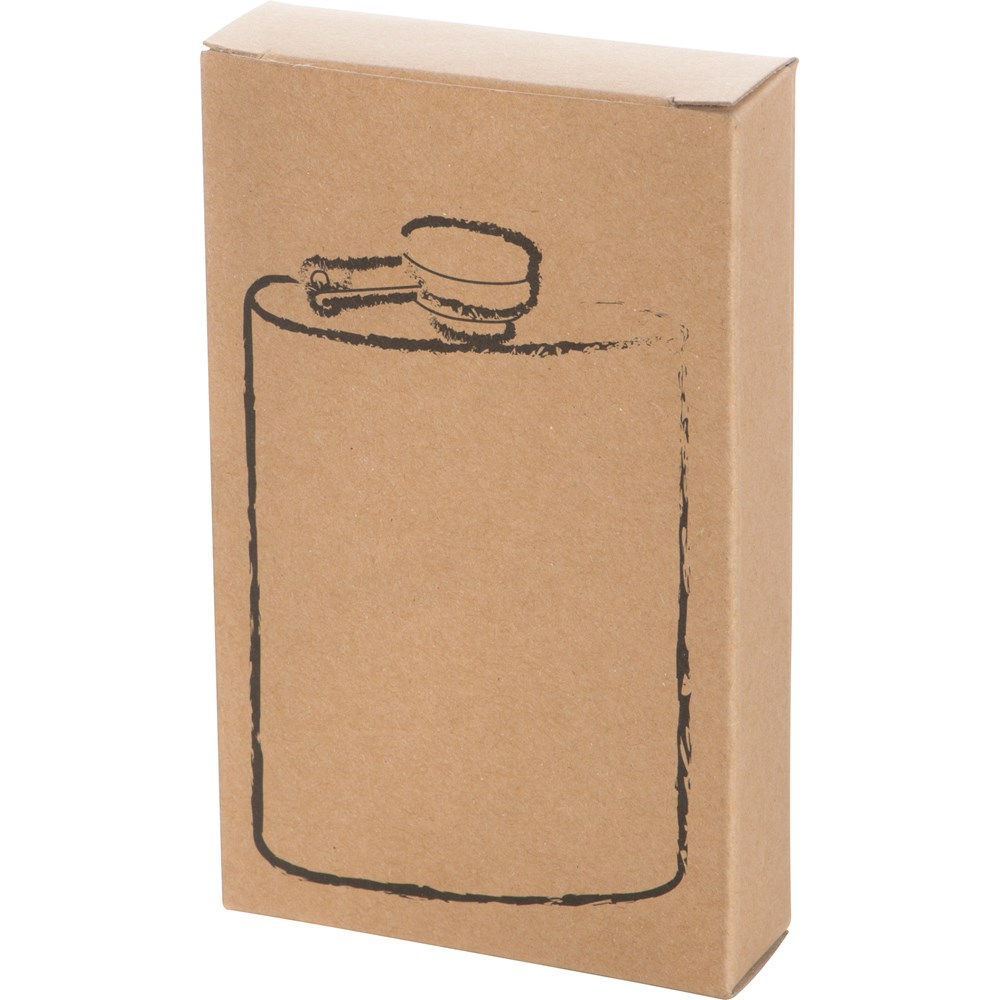 Flachmann (Fassungsvolumen 104 ml) aus Edelstahl mit Sicherheits-Drehverschluss. Ihr Werbung wird auf den Flachmann gelasert.