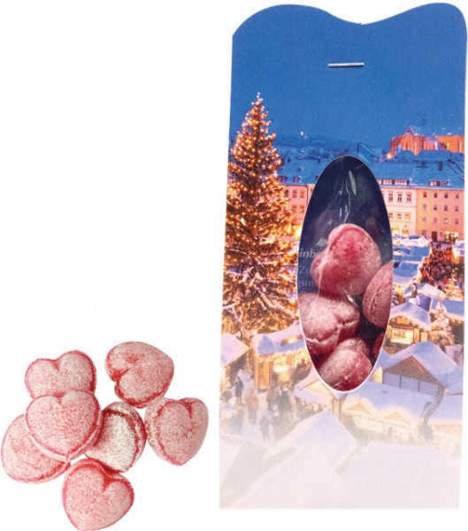 Holen Sie sich ein wenig Weihnachtsmarkt-Atmosphäre ins Büro. Unsere leckeren Glühweinbonbons sind dann genau richtig. Das Päckchen kann ab 250 Stück mit Ihrem Logo versehen oder individuell gestaltet werden. Inhalt: 10 Glühweinbonbons (je 2,7 g) Warn- und Sicherheitshinweise: Nicht für Kinder geeignet