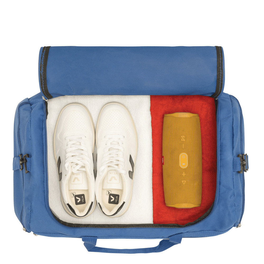 Sporttasche CHAMP: Reißverschluss-Hauptfach, farblich abgesetztes Reißverschluss-Vorfach, seitliche Reißverschlusstaschen, verstärkte Tragegriffe, verstell- und abnehmbarer Gurt mit Schulterpolster