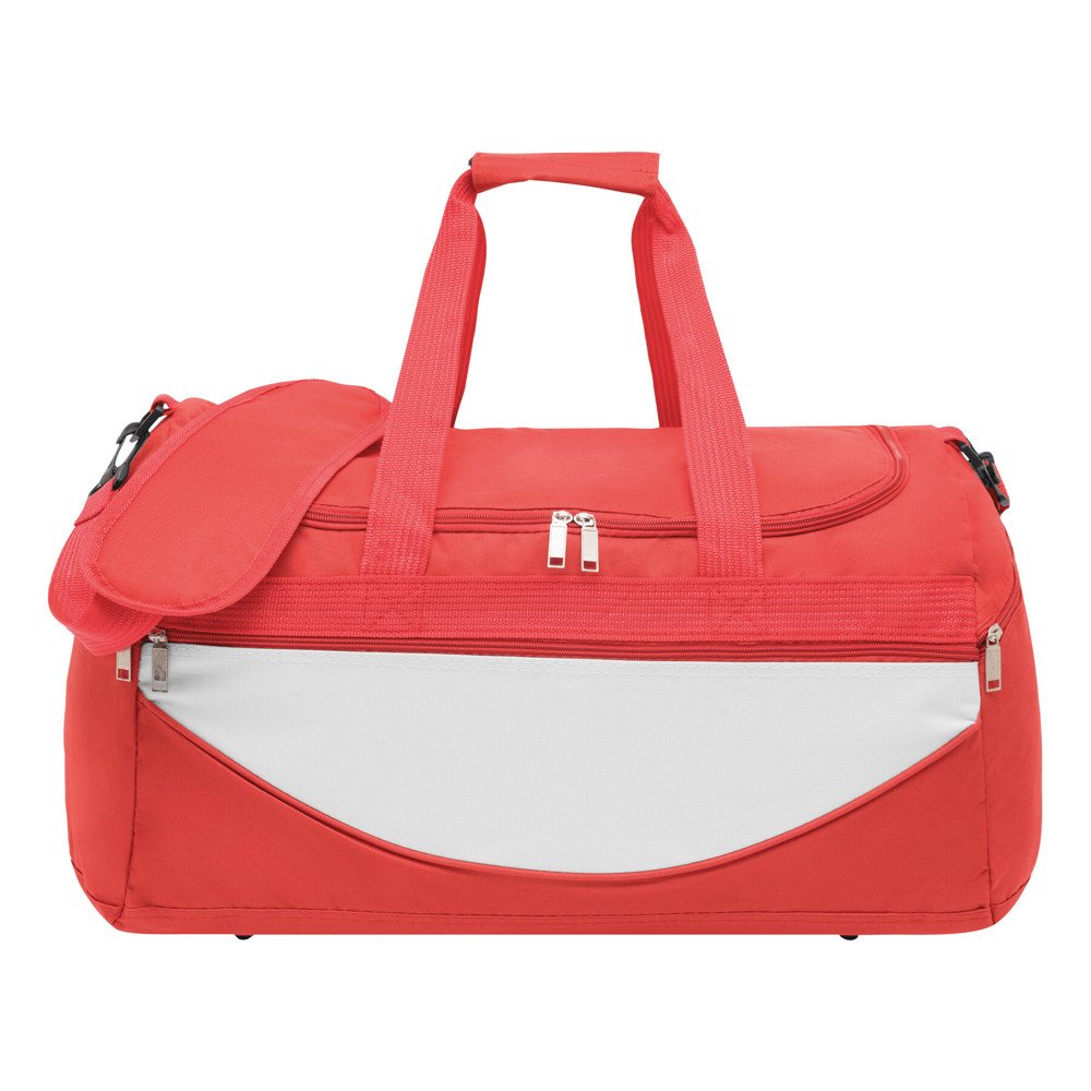 Sporttasche CHAMP: Reißverschluss-Hauptfach, farblich abgesetztes Reißverschluss-Vorfach, seitliche Reißverschlusstaschen, verstärkte Tragegriffe, verstell- und abnehmbarer Gurt mit Schulterpolster