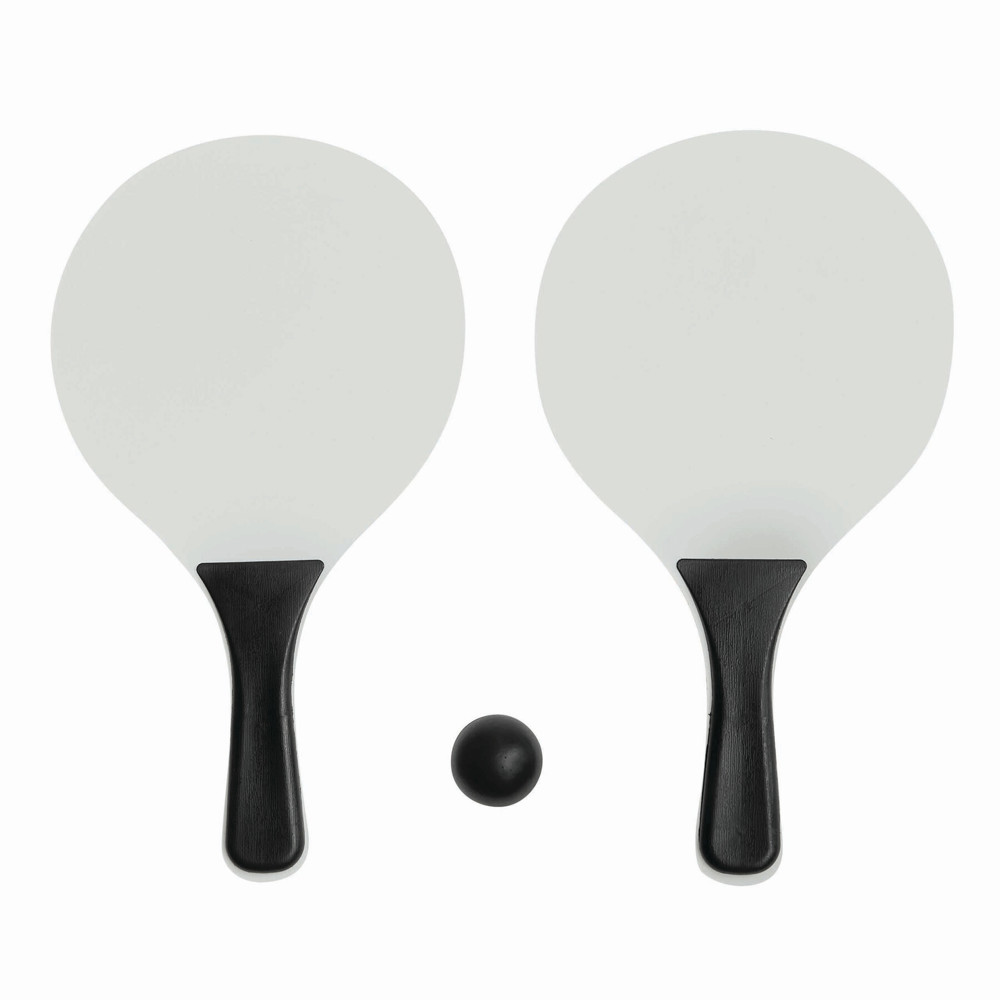 Beachball-Set SUMMER FEELING, 3-teilig: bestehend aus 2 Holzschlägern mit farbigen Griffen und 1 Softball, im Netzbeutel