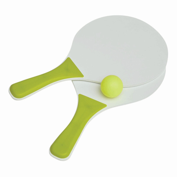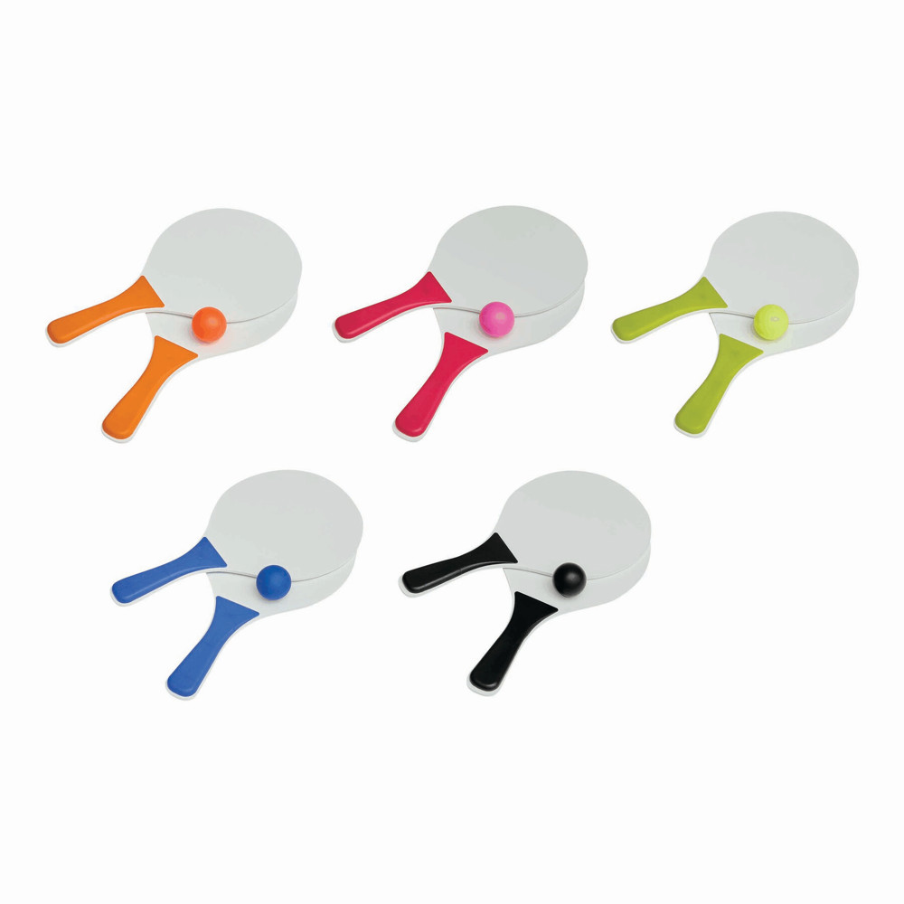 Beachball-Set SUMMER FEELING, 3-teilig: bestehend aus 2 Holzschlägern mit farbigen Griffen und 1 Softball, im Netzbeutel