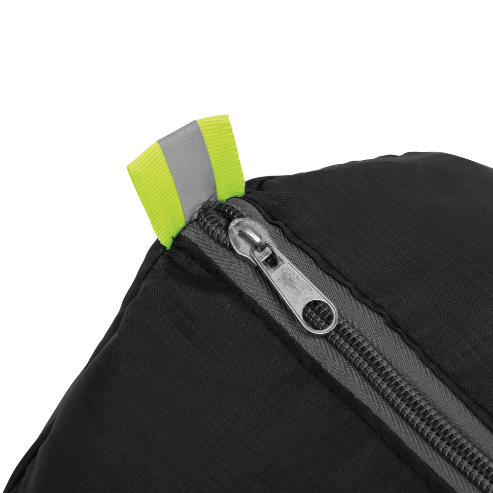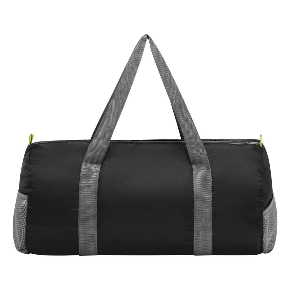 Sporttasche VOLUNTEER GYM, faltbar: Reißverschluss-Vorfach, Reißverschluss-Hauptfach mit 2 Reflektor-Etiketten, 2 seitliche Netzfächer, 2 lange Tragegriffe – lässt sich platzsparend zu einer Mini-Tasche zusammenfalten und passt perfekt in die Handtasche