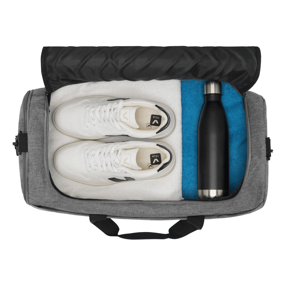 Sporttasche LEISURE, mit seitlichem Schuhfach: geräumiges Reißverschluss-Hauptfach, große Reißverschluss-Vortasche, seitliches Netzfach, verstell- und abnehmbarer Schultergurt mit Schulterpolster, verstärkte Tragegriffe
