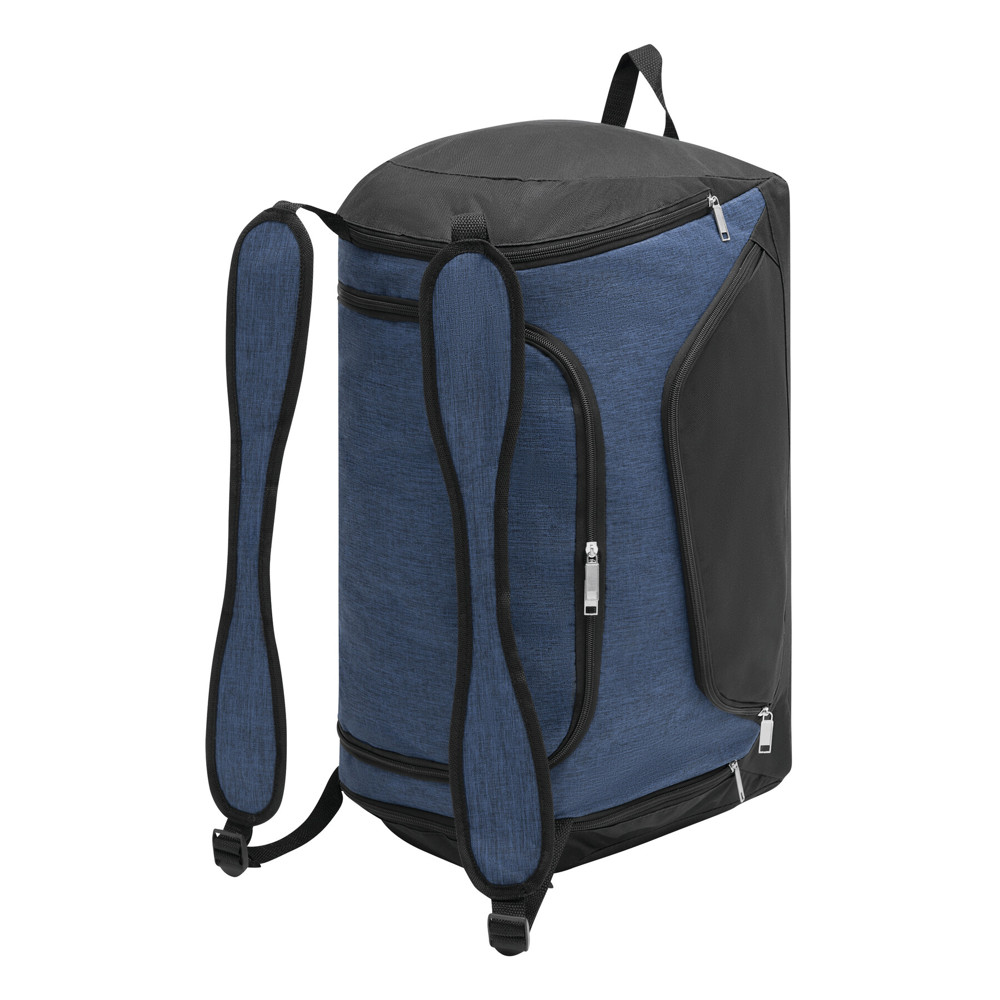 Sporttasche 2 IN 1: geräumiges Reißverschluss-Hauptfach, Reißverschluss-Vortasche, 1 zusätzliche Trageschlaufe, 2 seitliche Reißverschluss-Taschen, verstärkte Tragegriffe, auch als Rucksack einsetzbar