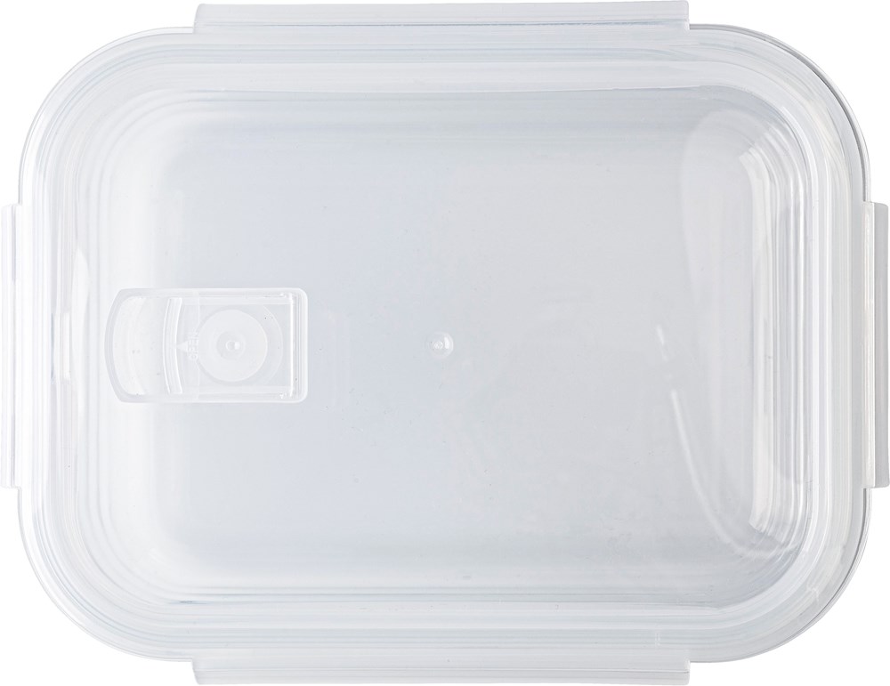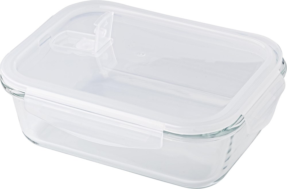 Brotdose aus hochwertigem Borosilikatglas mit Kunststoffdeckel. Für die Mikrowelle geeignet. Fassungsvermögen: ca. 1 Liter. Nicht spülmaschinengeeignet.