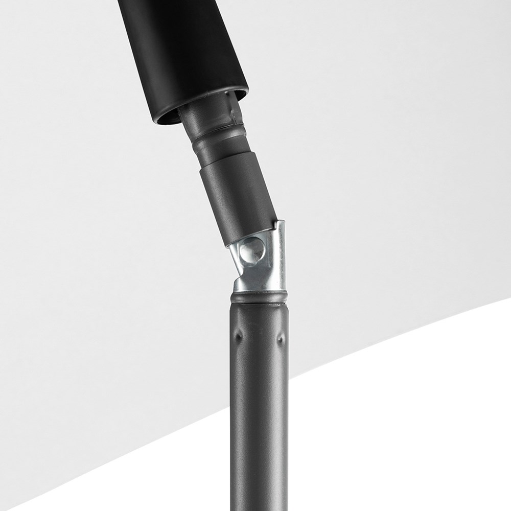 Moderner Sonnenschirm mit Gestell in Titan-Finish und Knickvorrichtung Einfache Handhabung durch Sicherheitsschieber, sehr stabile Fiberglasschienen, zweiteiliger und stufenlos höhenverstellbarer Stock mit Knickvorrichtung zur Neigung des Schirms, Stock in edlem Titan-Finish, Unterstock mit ca. 119 cm Länge und Drehfeststeller zur sicheren Fixierung, komfortables Tragefutteral, hochqualitativer Bezug mit einer Grammatur von ca. 200 g/m² und Lichtschutzfaktor UPF 50+, exklusive Füllständer (Art. 8920 oder Art. 8905) / Erdspieß (Art. 8939)