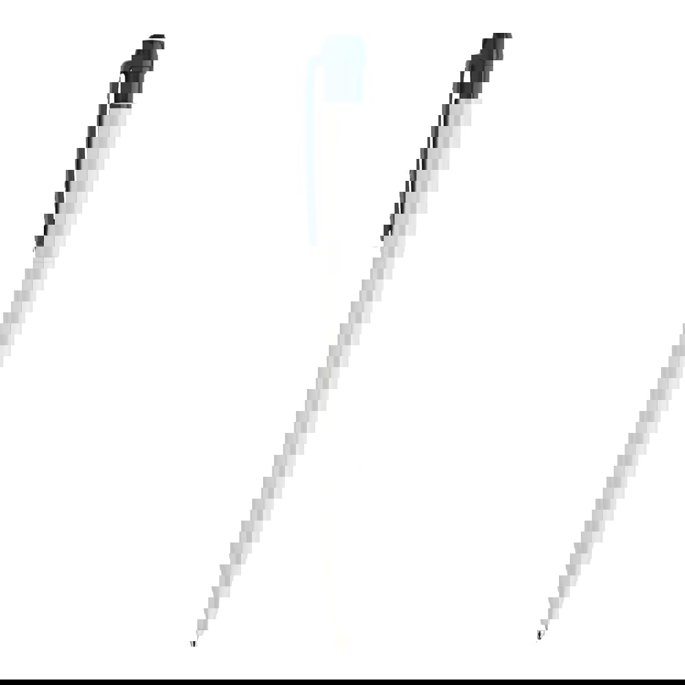 Schlanker weißer Hardcolour-Kugelschreiber mit farbigem Clip. Ein ansprechender Werbeartikel wegen seiner Druckfläche. Mit synthetischer blau schreibender X20-Refill-Mine. Druckkugelschreiber aus ABS, hergestellt in Europa. Ab einer Abnahmemenge von 5.000 Stück sind eigene Farbkombinationen möglich.