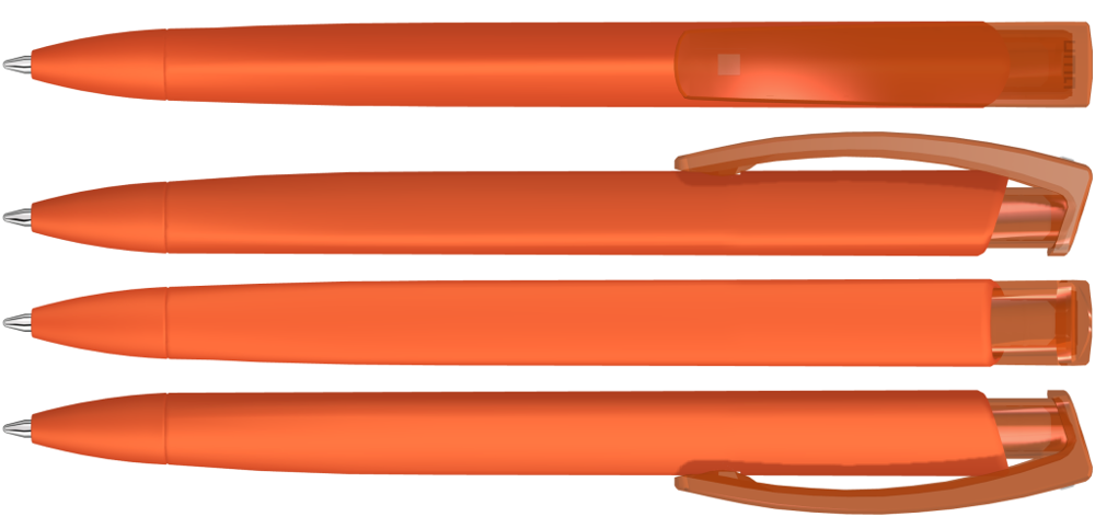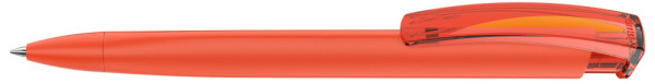 Druckkugelschreiber mit gummiertem Dreikantgehäuse und transparent glänzendem Clip. mehr