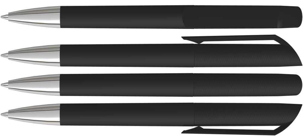 Drehkugelschreiber mit Softtouch-Gehäuse und gedeckt glänzendem Clip, Spitze glanzverchromt.