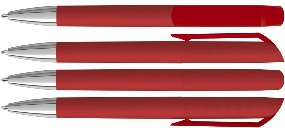 Drehkugelschreiber mit Softtouch-Gehäuse und gedeckt glänzendem Clip, Spitze glanzverchromt.