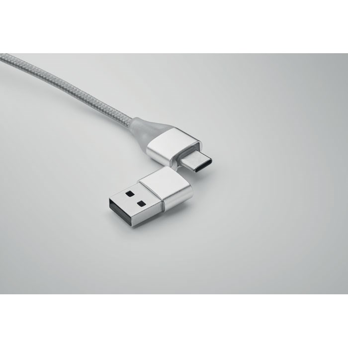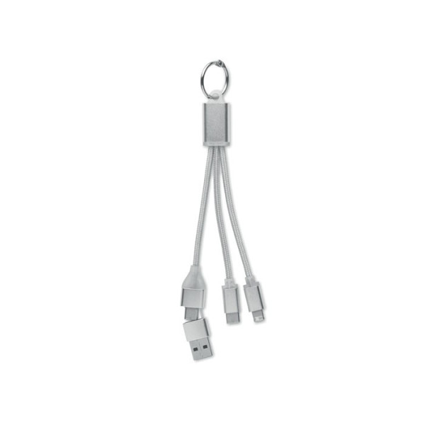 Schlüsselanhänger mit 4in1 Ladekabel mit Eingang: 2in1 Typ-C & Typ-A und Micro-B (2 in 1 Pin) und Typ-C Ausgang.