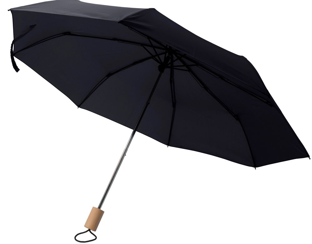 rPET faltbarer Schirm 190T mit acht Paneelen und Eichenholzgriff. Inklusive Tasche.