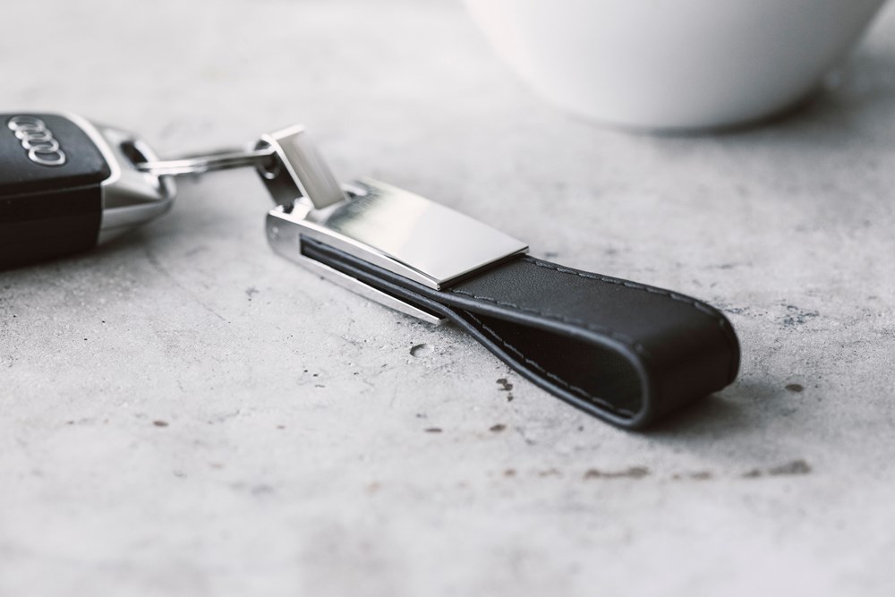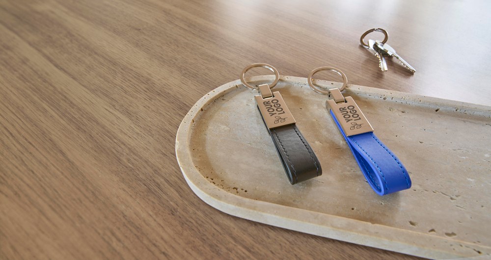 Schlüsselanhänger mit Stahlplatte und Kunsstofflasche Keon