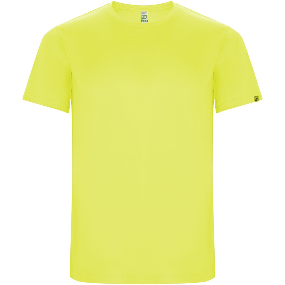 Funktions-T-Shirt aus recyceltem Polyester CONTROL DRY. Rundhalsausschnitt mit farblich abgesetzten Nähten. ECO-Logo-Etikett am Ärmel. Verpackung aus Recyclingmaterial. Herausnehmbares ECO-Etikett. Verpackung aus Recyclingmaterial. Technisches Gewebe. Das Modell ist 115 cm groß und trägt Größe 5/6.