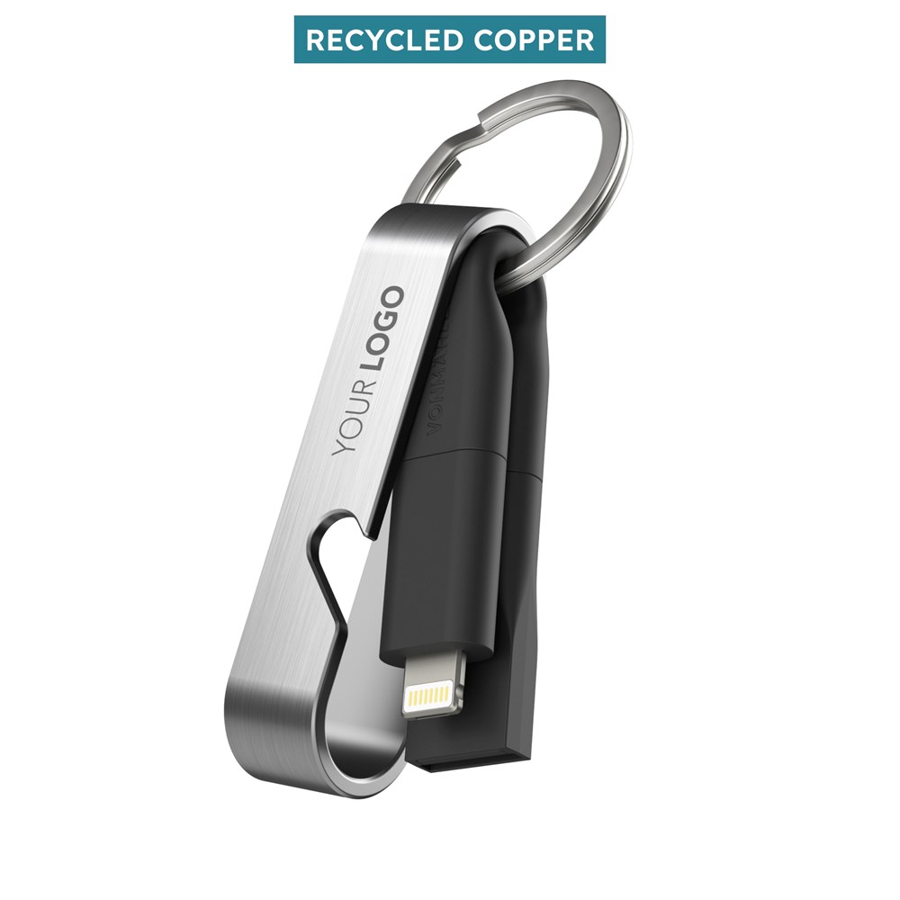 High Six ist Vonmählen's All-in-One Backup-Lade- und Datenkabel und bietet dir mit seinen sechs verschiedenen Kombinationsmöglichkeiten immer die richtige Verbindung zum Laden all deiner Endgeräte. Das Schnellladekabel (bis zu 60 W) ist dabei jederzeit sicher im Edelstahlrahmen verstaut, welcher zugleich als Flaschenöffner dient. High Six ist als Backup-Kabel speziell designt für den Schlüsselbund und somit immer und überall einsatzbereit. UVP: 24,99€