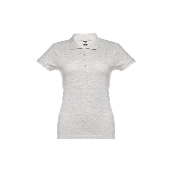 Damen Poloshirt aus Piqué Stoff 100% kardierter Baumwolle (195 g/m²), mit geripptem Kragen und Ärmel, Verstärkungsband am Kragen, verstärkte Knopfleiste mit 4 farblich abgestimmten Knöpfen und einem Ersatzknopf an der Innennaht.Bei der Farbe 183 bestehend aus 85% Baumwolle und 15% Viskose. Größen: S, M, L, XL, XXL