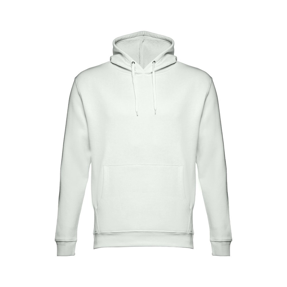Sweatshirt aus 50% Baumwolle und 50% Polyester (320g/m²), unisex mit einer Kapuze mit Kordelzug. Innen kardiert, 1x1 Ripp, Bund an Ärmel und einer Kängurutasche. Größen: XS, S, M, L, XL, XXL