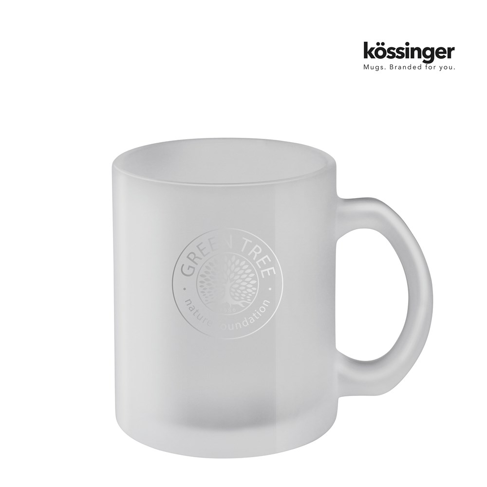 Kössinger Glas Carina, das außen satinierte Trinkglas wirkt edel und modern. Die Henkelbecher-Form aus Glas ist eine interessante Alternative zur Keramikvariante Carina. Die Satinierung des Glases ermöglicht raffinierte Gestaltungen auf der großen Druck-Fläche.
