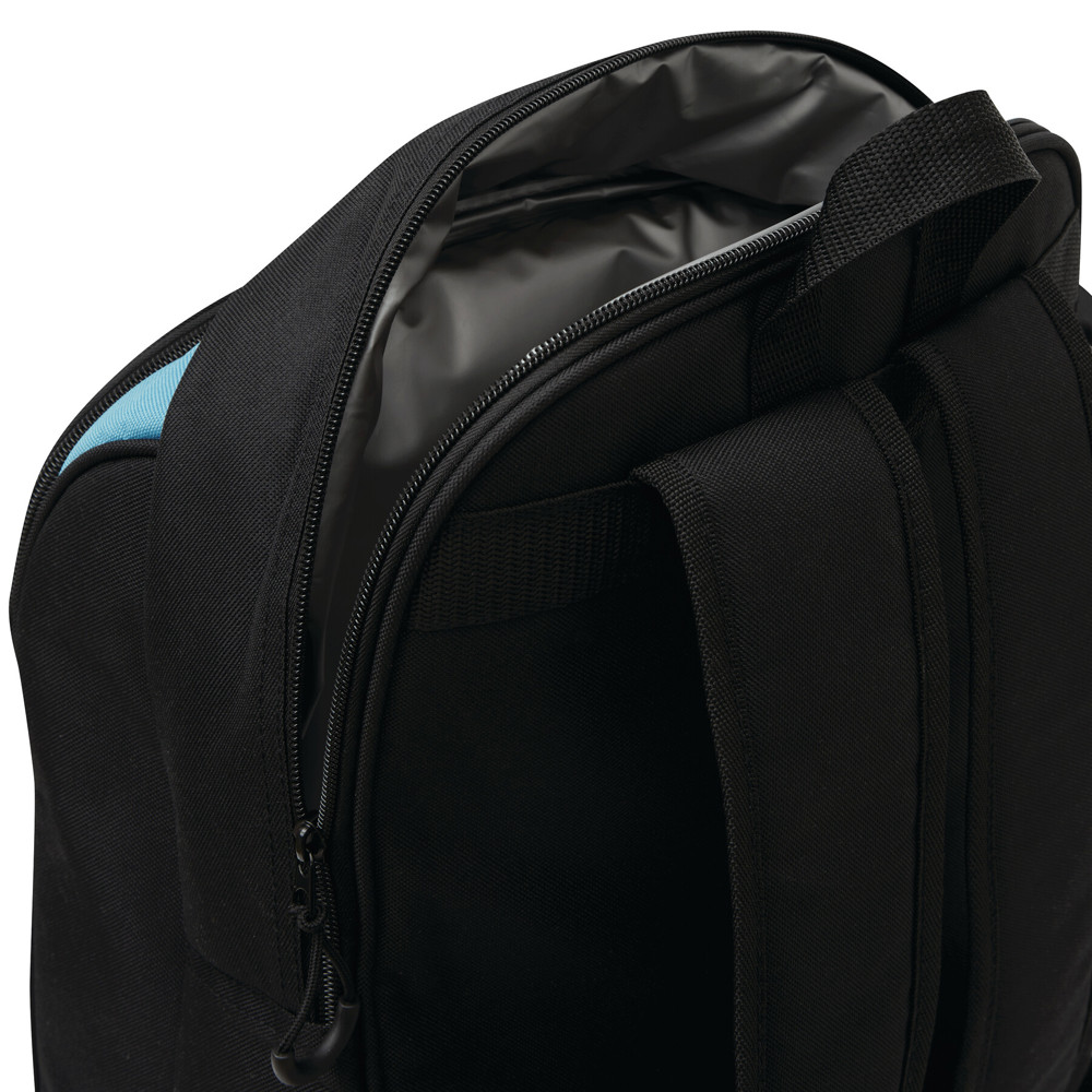 Picknick-Rucksack SMART TRIP für 4 Personen: isoliertes Reißverschluss-Kühlfach, Reißverschluss-Mittelfach inkl. Edelstahl-Besteck mit Kunststoffgriffen, Kunststoff-Weingläsern und -Tellern, Stoffservietten, Salz- und Pfefferstreuer, Reißverschluss-Vorfach, Trageschlaufe, gepolsterte Schultergurte, 1 abnehmbare isolierte Flaschenhalterung an der Seite