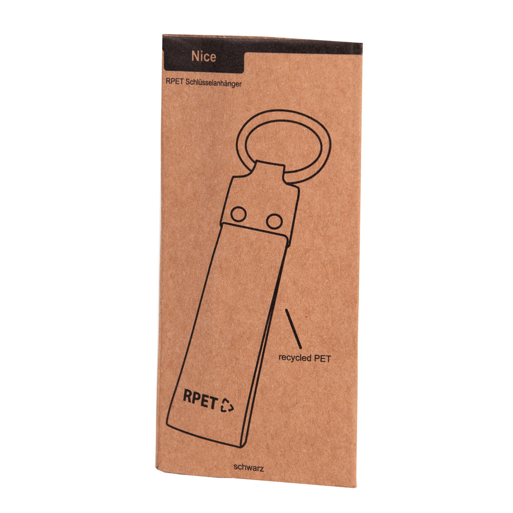 Schlüsselanhänger NICE: aus rPET, mit Schlüsselring