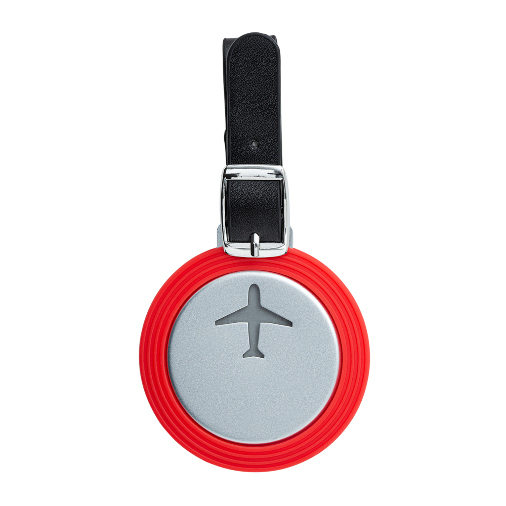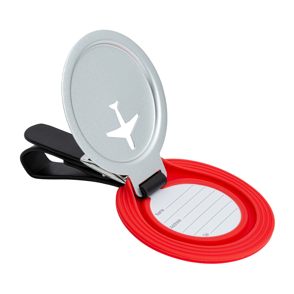 Diese REFLECTS® Eigenentwicklung ist ein unverzichtbarer Begleiter auf jeder Reise. Der Kofferanhänger zeichnet sich durch modernes Design und trendige Farben aus, von dezentem Schwarz-Schwarz bis zu leuchtendem Rot-Silber. Die Aluminiumplatte hat ein ausgestanztes Flugzeug-Motiv auf der Vorder-seite und liegt sicher im umschließenden Silikon. Zwischen der Silikonhülle und Aluminiumplatte befindet sich ein Papier-Inlay für Name, Adresse und Telefonnummer. Auf diese Weise bleiben die persönlichen Daten verdeckt. Das Band aus Kunstleder mit Metallschnalle ermöglicht sicheres Befestigen des Anhängers an Koffer oder Rucksack.