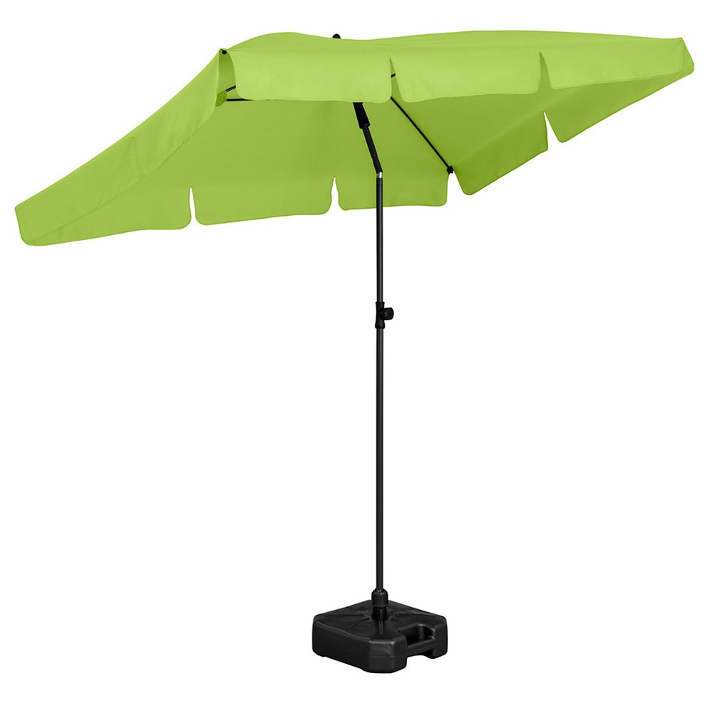 Moderner, rechteckiger Sonnenschirm mit Gestell in Titan-Finish, Knickvorrichtung und mit Volant Einfache Handhabung durch Sicherheitsschieber, sehr stabile Fiberglasschienen, zweiteiliger und stufenlos höhenverstellbarer Stock mit Knickvorrichtung zur Neigung des Schirms, Stock in edlem Titan-Finish, Unterstock mit ca. 119 cm Länge und Drehfeststeller zur sicheren Fixierung, komfortables Tragefutteral, hochqualitativer Bezug mit einer Grammatur von ca. 200 g/m² und Lichtschutzfaktor UPF 50+, exklusive Füllständer (Art. 8920 oder Art. 8905) / Erdspieß (Art. 8939)