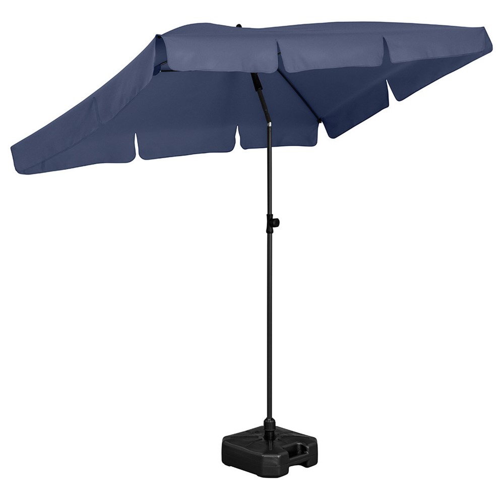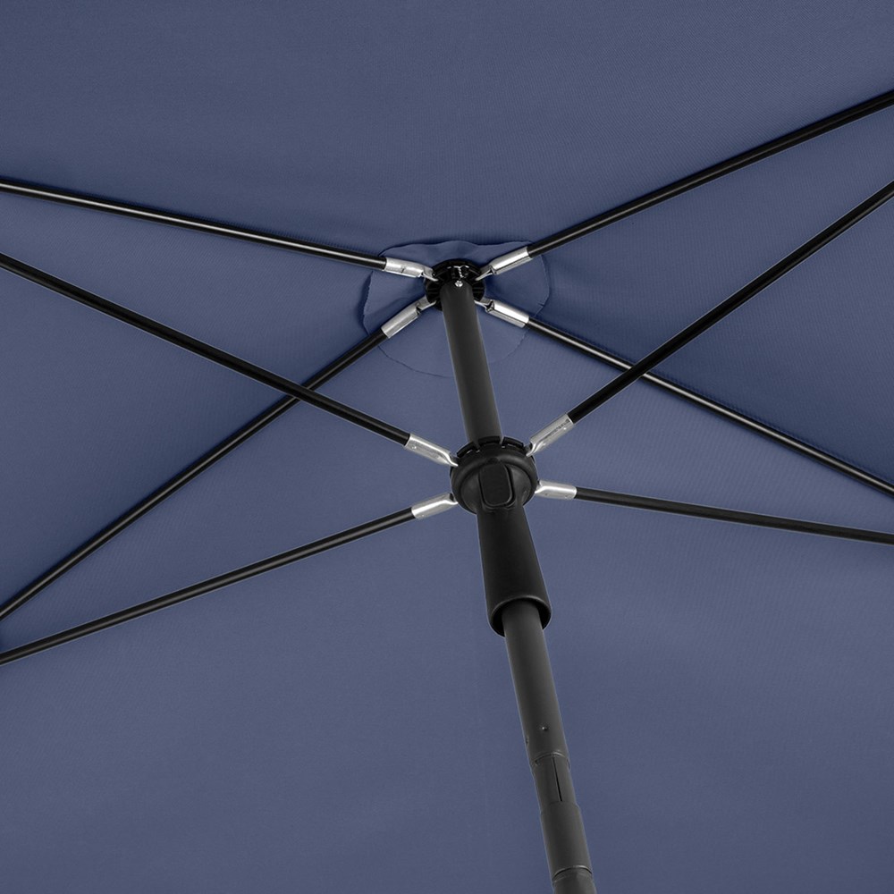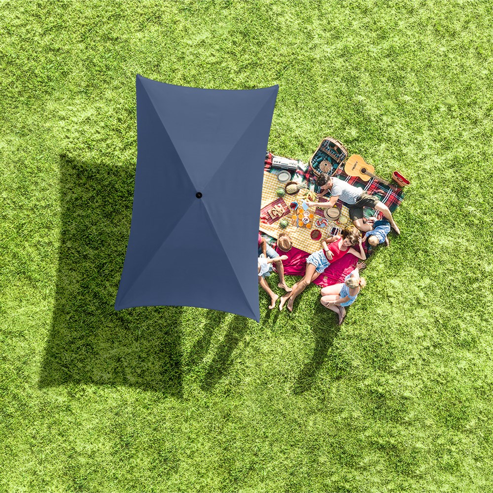 Moderner, rechteckiger Sonnenschirm mit Gestell in Titan-Finish, Knickvorrichtung und mit Volant Einfache Handhabung durch Sicherheitsschieber, sehr stabile Fiberglasschienen, zweiteiliger und stufenlos höhenverstellbarer Stock mit Knickvorrichtung zur Neigung des Schirms, Stock in edlem Titan-Finish, Unterstock mit ca. 119 cm Länge und Drehfeststeller zur sicheren Fixierung, komfortables Tragefutteral, hochqualitativer Bezug mit einer Grammatur von ca. 200 g/m² und Lichtschutzfaktor UPF 50+, exklusive Füllständer (Art. 8920 oder Art. 8905) / Erdspieß (Art. 8939)