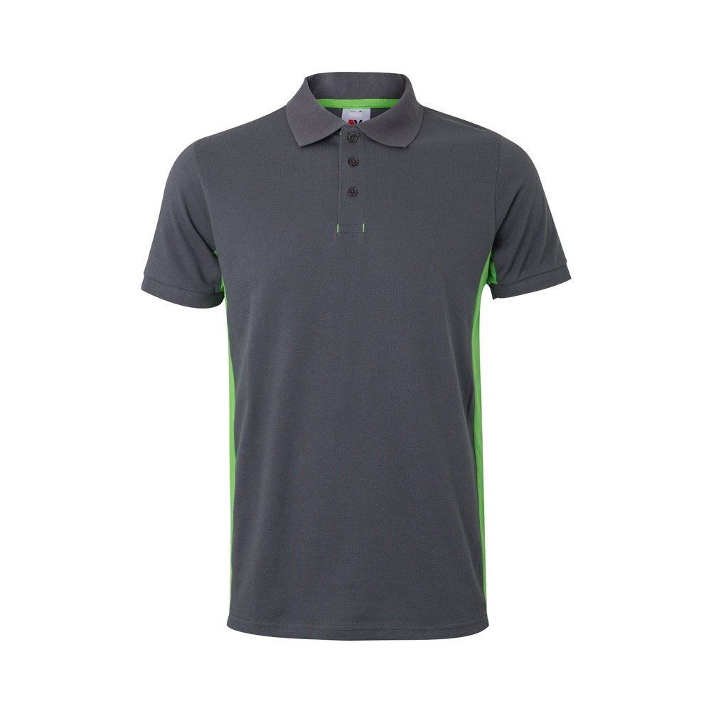 Two-tone piqué polo shirt (180g/m²), short sleeve, in cotton (60%) and polyester (40%). Mit Knopfverschluss, geripptem Kragen und unteren Ärmeln. Seiten und Knopfleiste in Kontrastfarbe. Größe: XS, S, M, L, XL, 2XL, 3XL