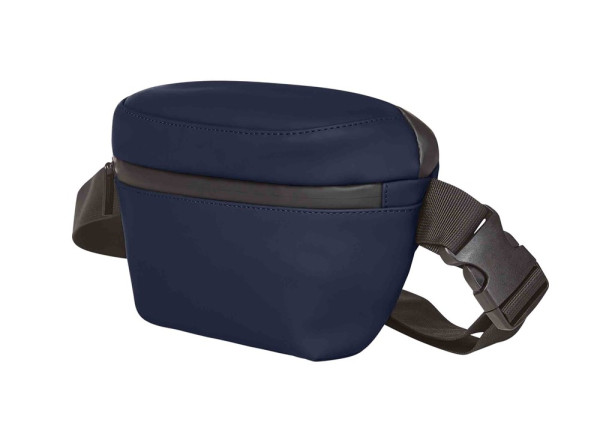moderne Bauchtasche; Hauptfach mit 2-Wege-Reißverschluss und flachem Einsteckfach innen; wasserabweisende Reißverschlüsse; Reißverschluss-Vortasche; längenverstellbarer Gurt mit Gummilasche zur Gurtfixierung; als Hüft- oder Body-Bag tragbar; große Schnalle seitlich für komfortables Öffnen und Schließen