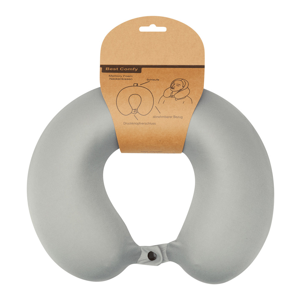 Nackenkissen BEST COMFY: mit Druckknopf verschließbares Nackenhörnchen, abnehm- und waschbarer Jersey-Bezug, gefüllt mit Memory Foam für die optimale Wohlfühlposition, Schlaufe zum Aufhängen bzw. Befestigen während des Transports - ideal als Reise-Schlafkissen, Kopf-, Rücken- und Nackenstütze
