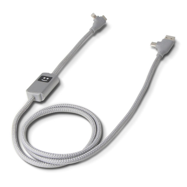 Clever aufladen! 100W für MacBooks, Laptops, Tablets, Smartphones. Cleveres Smiley-Symbol: schnelles (grünes) oder normales (weißes) Laden. Aus recyceltem Aluminium und Kunststoff für schnelles Laden und Datentransfer.