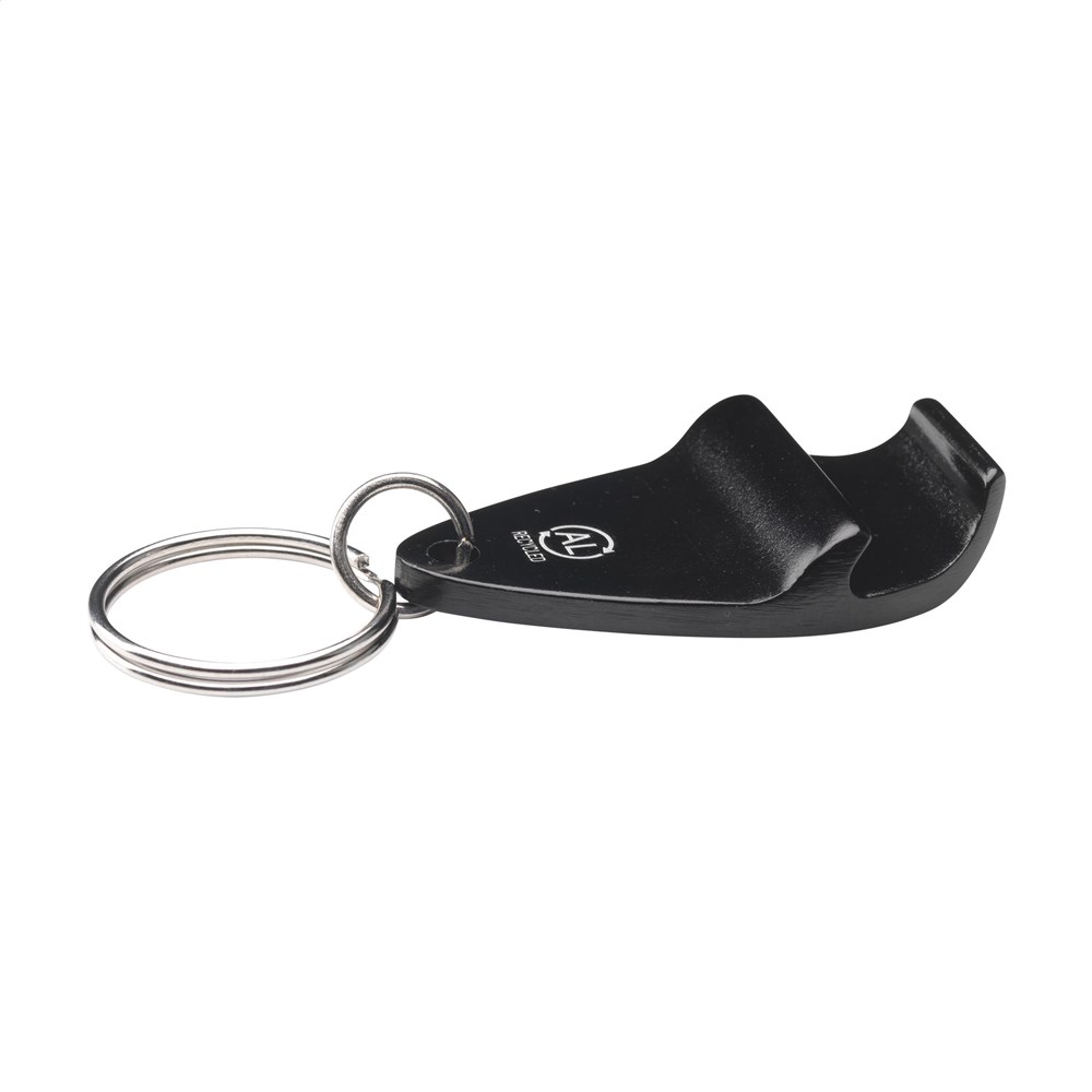 Schlüsselanhänger mit Flaschenöffner aus recyceltem Aluminium und Schlüsselring aus Metall.... mehr