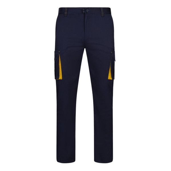 VL FIDES. Zweifarbige Stretch-Hose mit mehreren Taschen (240 g/m²), aus Baumwolle (46 %), EME (38 %) und Polyester (16 %)