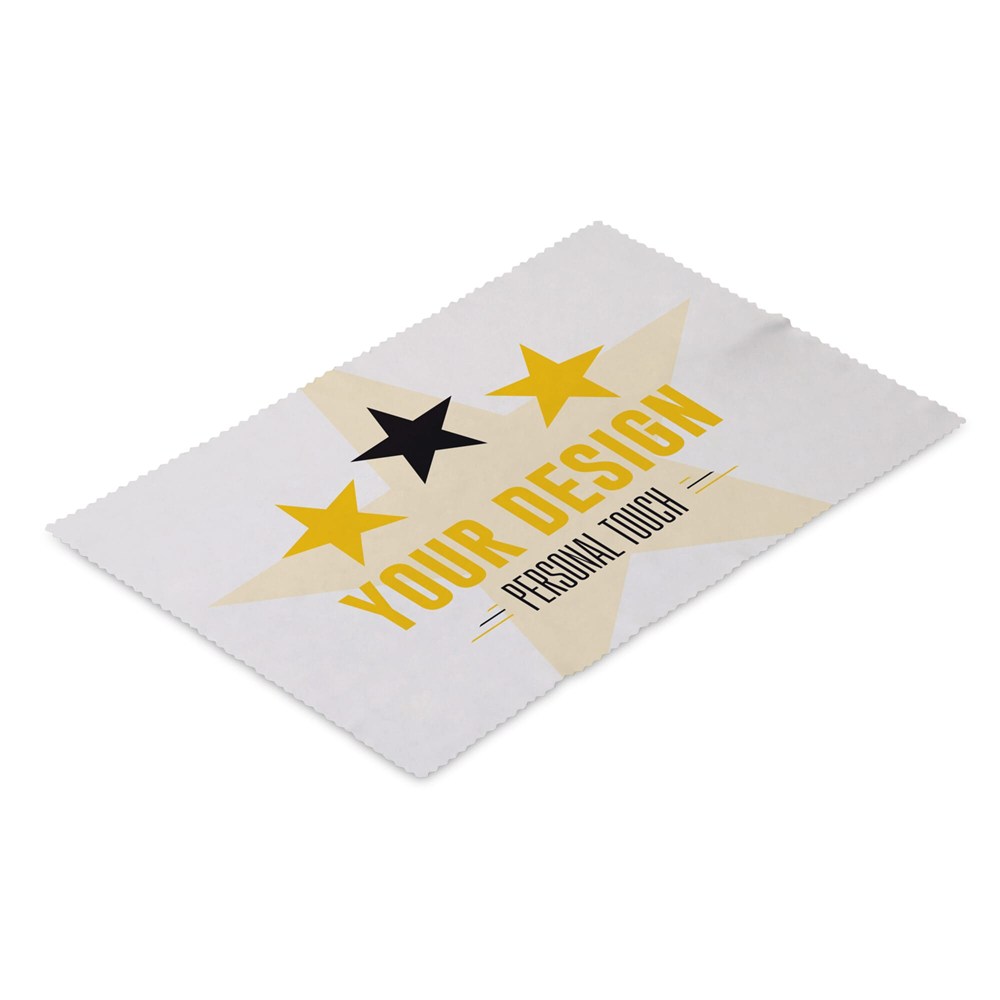 Mikrofaser-Reinigungstuch 250g/m² (200x300mm) für Displays oder Brillen. Einzeln verpackt im Polybeutel. Inkl. vollfarbiger und vollflächiger Bedruckung. Optional ist die Rückseites des Tuches bedruckbar und es kann in einem individuellen PVC-Beutel geliefert werden.