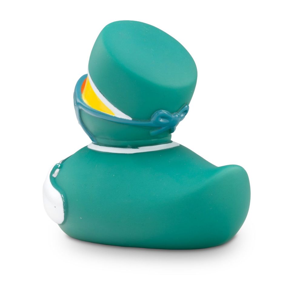 Otto Operateur ist der Meisterchirurg im Enten-Krankenhaus. In OP-Kleidung mit Maske und Handschuhen ausgestattet ist er bereit für jede Not-OP. Der Arzt hält ein Skalpell und eine Schere in den Händen, um direkt loslegen zu können. Größe: ca. 8 cm. Inklusive Quietschventil