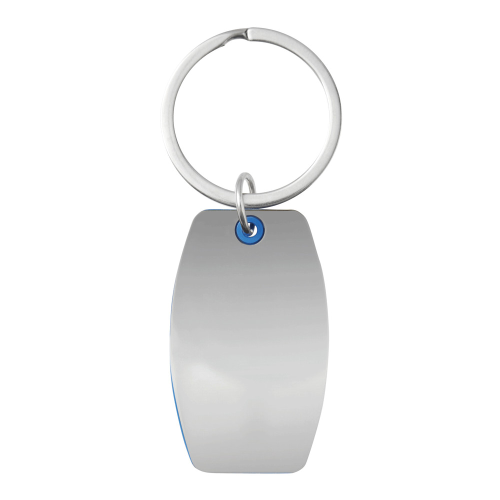 Schlüsselanhänger MIRROR: farbiger Kunststoff zwischen hochglanzpoliertem Stahl, mit Schlüsselring