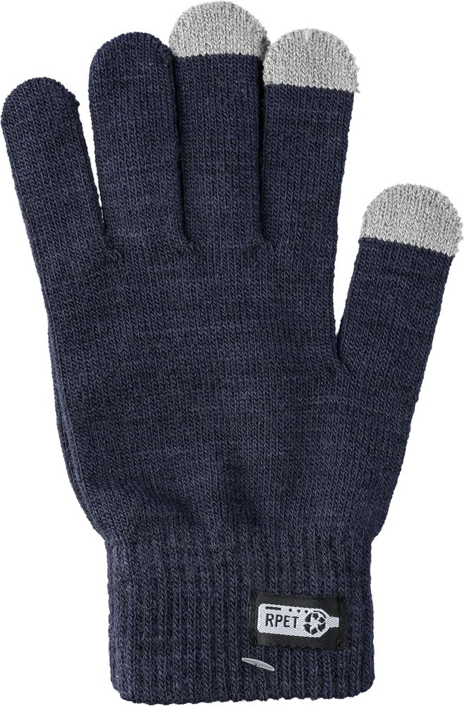 Die rPET-Touchscreen-Handschuhe verfügen über eine leitfähige Beschichtung an drei Fingern, die die Verwendung von Bildschirmen ermöglicht, Größe S/M. Sie enthalten ein rPET-Etikett auf der Außenseite und ein Waschetikett mit Informationen auf der Innenseite.