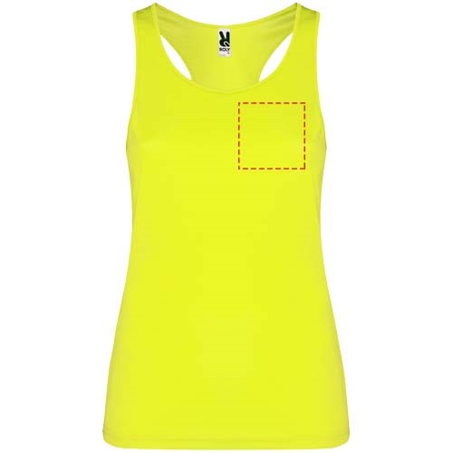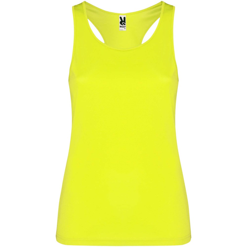 Funktionsstoff, atmungsaktiv, leicht zu waschen und zu trocknen. Gerippter Arm- und Halsausschnitt. Racerback und Seitennähte. Abnehmbares Etikett.
