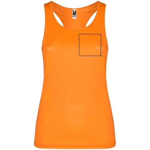 Funktionsstoff, atmungsaktiv, leicht zu waschen und zu trocknen. Gerippter Arm- und Halsausschnitt. Racerback und Seitennähte. Abnehmbares Etikett.