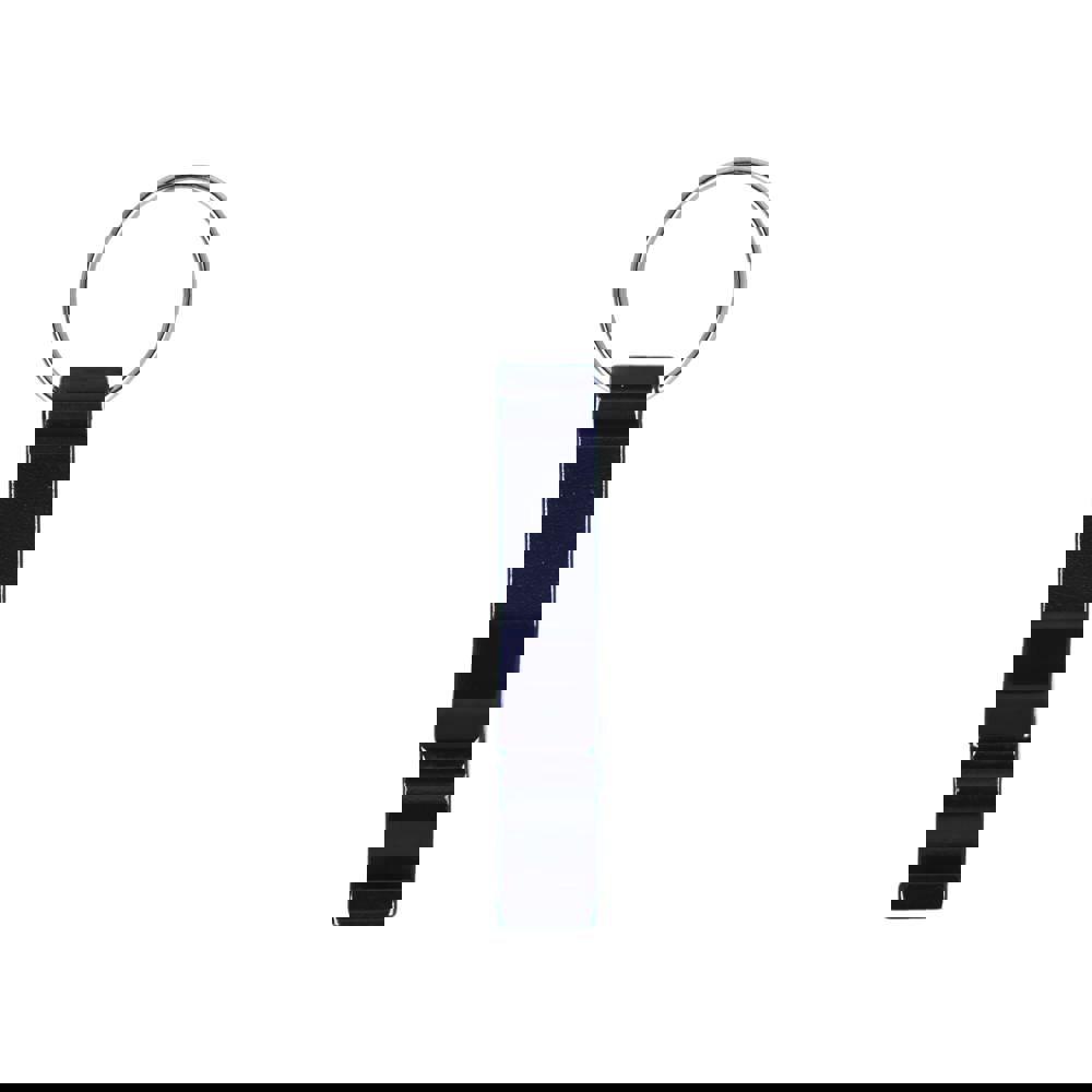 Aluminium-Schlüsselanhänger mit kombiniertem Flaschen- und Dosenöffner. Leicht, langlebig und ideal für den täglichen Gebrauch.