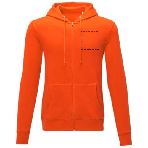 Der Theron Herren-Kapuzenpullover mit durchgehendem Reißverschluss - hier treffen Stil und Komfort in perfekter Harmonie aufeinander. Dieser Kapuzenpullover ist eine wahre Verkörperung des klassischen Designs. Außerdem können Sie den Kapuzenpulli innen mit einem individuellen Branding versehen oder individuell gestalten. Eine Kängurutasche kombiniert Komfort mit moderner Ästhetik. Die flachgestrickten Rippbündchen an Saum und Ärmeln garantieren einen sicheren Sitz, während die gebürstete Innenseite für maximale Weichheit sorgt. Das 240 g/m² schwere Mischgewebe aus Baumwolle und Polyester verspricht Wärme und Haltbarkeit. Werten Sie Ihre Garderobe mit dem Theron Kapuzenpullover mit durchgehendem Reißverschluss auf.
