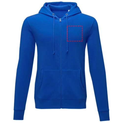 Der Theron Herren-Kapuzenpullover mit durchgehendem Reißverschluss - hier treffen Stil und Komfort in perfekter Harmonie aufeinander. Dieser Kapuzenpullover ist eine wahre Verkörperung des klassischen Designs. Außerdem können Sie den Kapuzenpulli innen mit einem individuellen Branding versehen oder individuell gestalten. Eine Kängurutasche kombiniert Komfort mit moderner Ästhetik. Die flachgestrickten Rippbündchen an Saum und Ärmeln garantieren einen sicheren Sitz, während die gebürstete Innenseite für maximale Weichheit sorgt. Das 240 g/m² schwere Mischgewebe aus Baumwolle und Polyester verspricht Wärme und Haltbarkeit. Werten Sie Ihre Garderobe mit dem Theron Kapuzenpullover mit durchgehendem Reißverschluss auf.