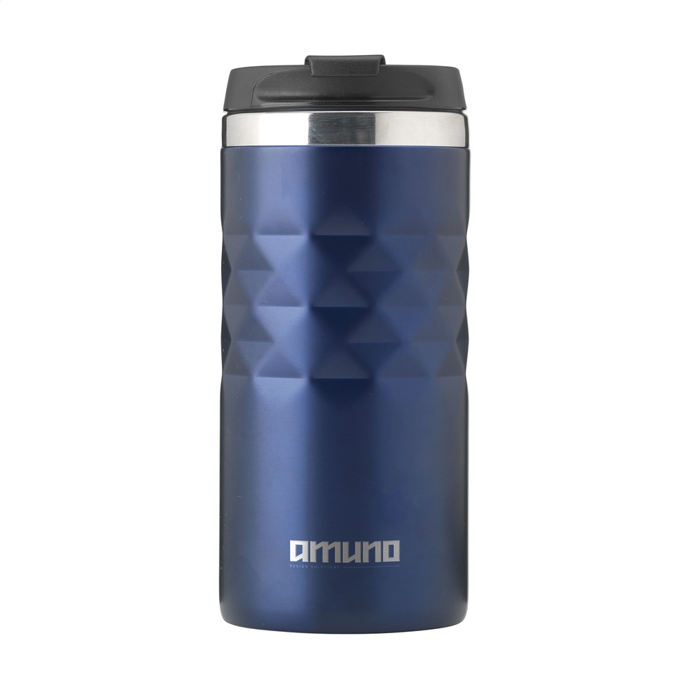 Doppelwandiger Thermobecher aus recyceltem Edelstahl. Mit Schraubdeckel mit Klicköffnung. Mit auffallendem geometrischem 3D-Rautenmuster im Halter. Rutschfeste Unterseite. Nicht spülmaschinengeeignet. RCS-zertifiziert. Recyceltes Material insgesamt: 74%. Fassungsvermögen 280 ml. Edelstahl kann viele Male recycelt werden – die Qualität des Materials bleibt dabei weitgehend erhalten. Durch die Verwendung von recyceltem Edelstahl kommt eine geringere Menge an neuen Rohstoffen zum Einsatz. Das bedeutet weniger Energieverbrauch und weniger Wasserverbrauch. Verpackt pro Stück.
