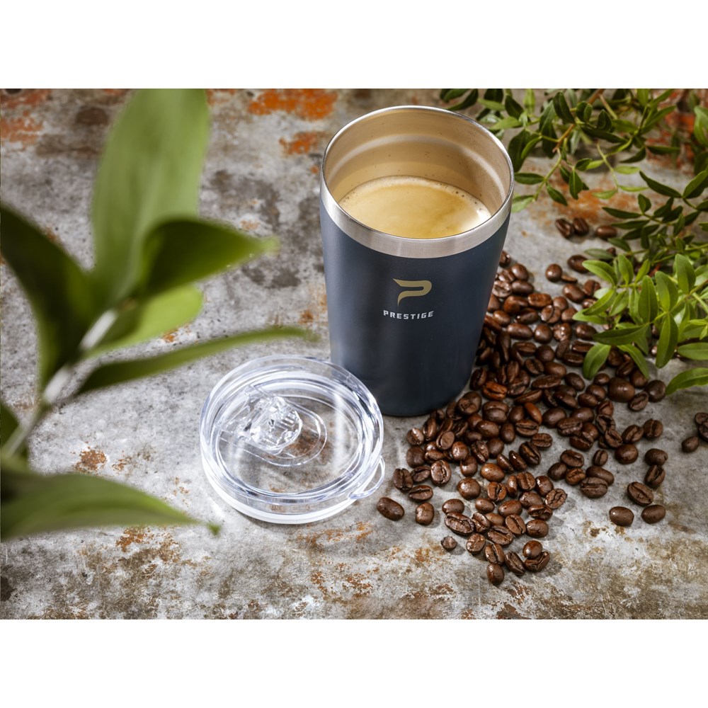 Doppelwandiger Thermobecher aus recyceltem Edelstahl. Mit einer wunderschönen Pulverbeschichtung versehen. Der Becher ist mit einem transparenten Aufsteckdeckel mit verschließbarer Trinköffnung versehen. Passt perfekt in den Becherhalter in Ihrem Auto. Ideal für unterwegs. Nicht spülmaschinengeeignet. RCS-zertifiziert. Gesamtes recyceltes Material: 75%. Fassungsvermögen 380 ml. Edelstahl kann viele Male recycelt werden – die Qualität des Materials bleibt dabei weitgehend erhalten. Durch die Verwendung von recyceltem Edelstahl kommt eine geringere Menge an neuen Rohstoffen zum Einsatz. Das bedeutet weniger Energieverbrauch und weniger Wasserverbrauch. Verpackt pro Stück.
