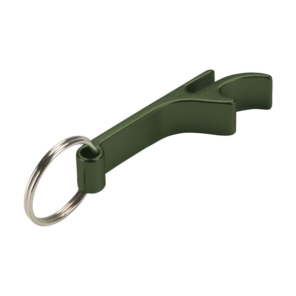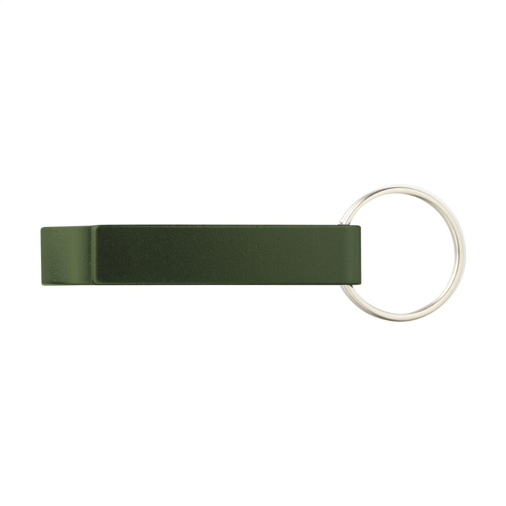 Schlüsselanhänger mit Öffner aus Aluminium.