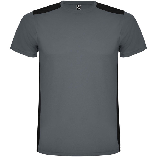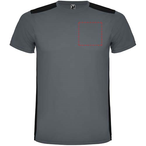 Funktions-T-Shirt aus atmungsaktivem Stoff. Rundhalsausschnitt. Kombination aus zwei Polyestergeweben im Rücken- und Schulterbereich. Polyester Bienenwabe Vorne und 3D-Netz Polyester auf Schulter und Rücken. Material ist feuchtigkeitabsorbierend. Ziernähte auf den Schultern und Seiten. Schnitt mit verlängertem Rückenteil. Abnehmbares Etikett.