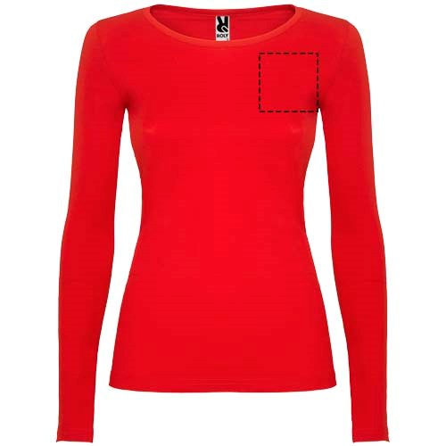 Langärmeliges, halb tailliertes T-Shirt mit feinem Halsbündchen. Keine Ärmelbündchen. Seitennähte. Herausnehmbares Etikett.