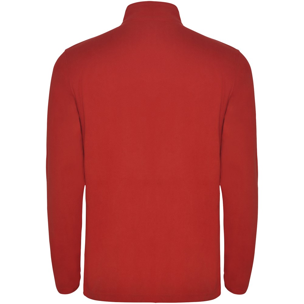 Mikrofleece mit halbem Reißverschluss im Nacken und Kinnschutz. Ärmelbündchen mit passendem Gummizug. Herausnehmbares Etikett. Das Modell ist 190 cm groß und trägt Größe L.